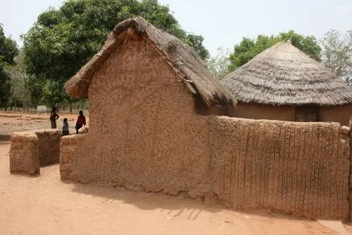 The final stage of the building process is the plastering and pattern making, an activity carried out entirely by women and young girls. Madam Mamuna, the most skilled pattern designer in the villager was interviewed for this paper. Most of the girls learn the art from their mothers, and pass it on to their daughters. As far as the making of patterns on the walls are concerned, the outermost walls of the house are emphasised because apart from their aesthetic appeal, the patterns increase a walls resilience to weathering through rain. Historically, the patterns were codified. They were records of birthdates, marriage dates and for keeping track of time in general. Hence they performed a dual role of granting longevity to the wall in question and of keeping information. In recent times however, the quest for modernity as well as a decreasing sense of community has put the practice of pattern-making under threat of extinction. Plain walls comparable to those found elsewhere are preferred, since they are considered a mark of the modern. The situation is further aggravated by the fact that the younger women are not interested in learning the practice, since they consider it colloquial. Finally the gradual introduction of cement as a wall finish makes it no longer necessary to create protective patterns as it were.